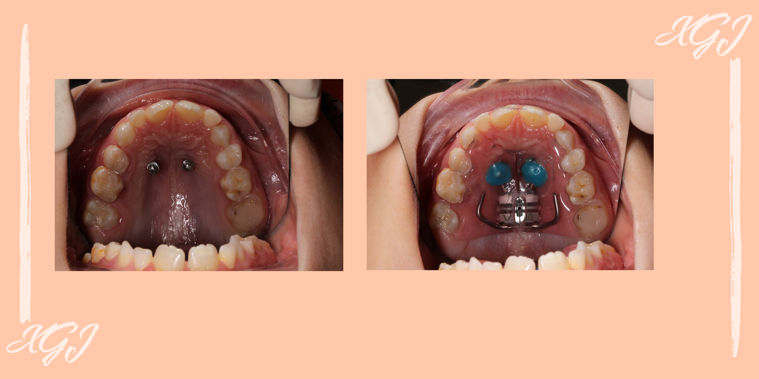 Paciente de 8 años de edad que presenta mordida cruzada derecha. Debido a que no teníamos suficiente soporte dentario para soportar una expansión ( ausencia de 26) decidimos realizar una expansión de paladar soportada con dos microtornillos y estructura de acrílico.